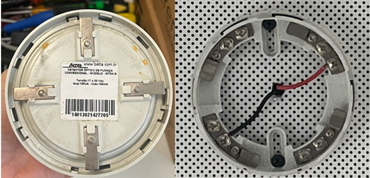 Orçamento para o fornecimento e troca de um detector óptico de fumaça convencional, instalado em sistema de alarme de incêndio (12–30V), conforme modelo em anexo/imagem.